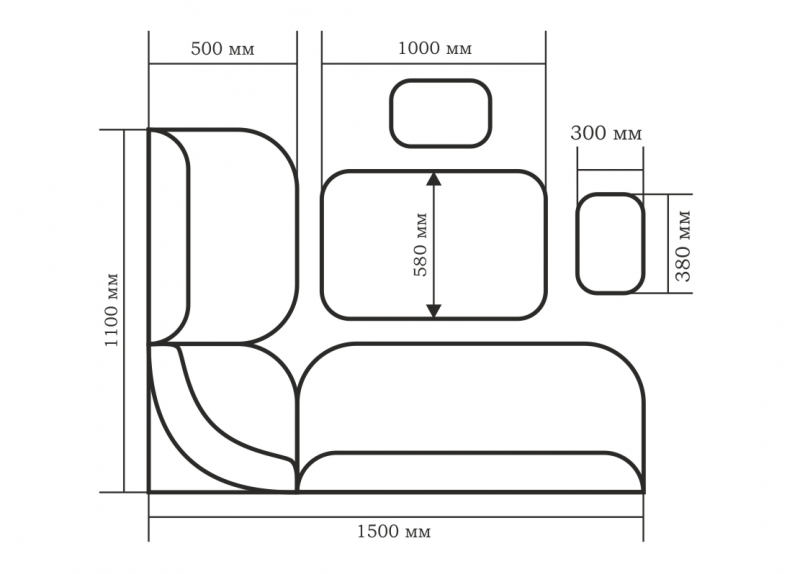 Размер углового дивана: 1500х1100х850