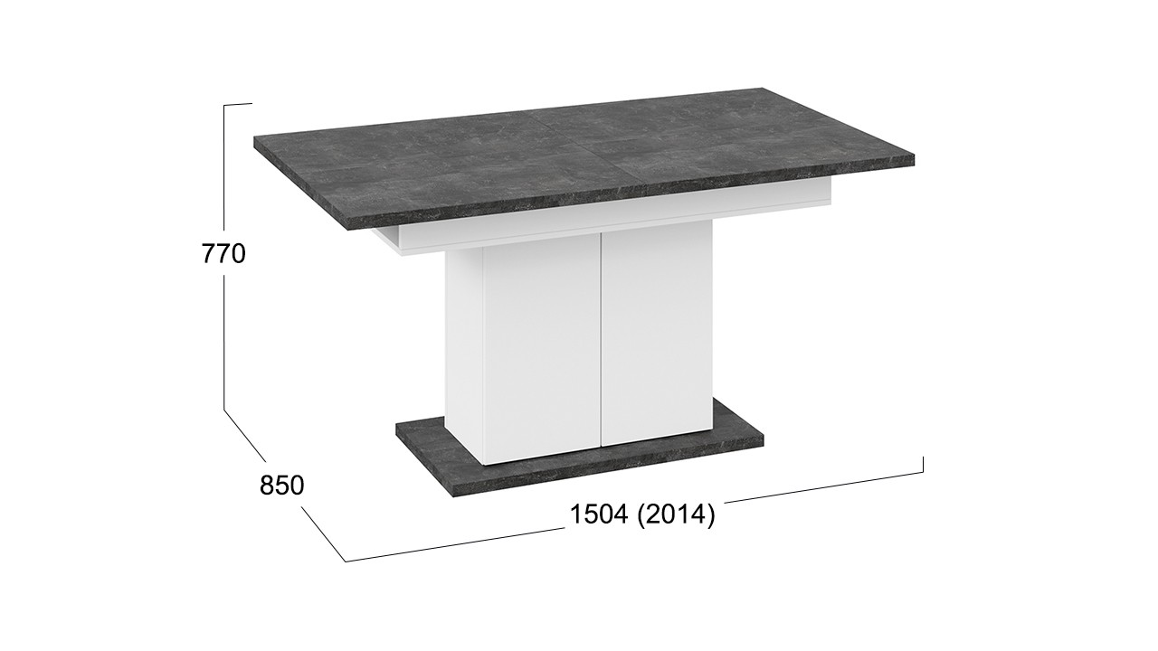 • Размеры стола: Длина 1504 мм (2014 мм в разложенном виде) x Ширина 850 мм x Высота 770 мм